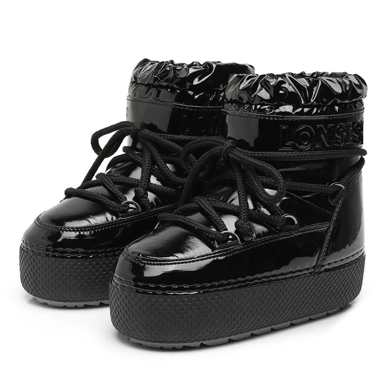 Ankle Boots Women Winter Genuine Leather Waterproof Platform Snow Boots For Warm Plush Non Slip Cotton Padded Shoes Size 34-41