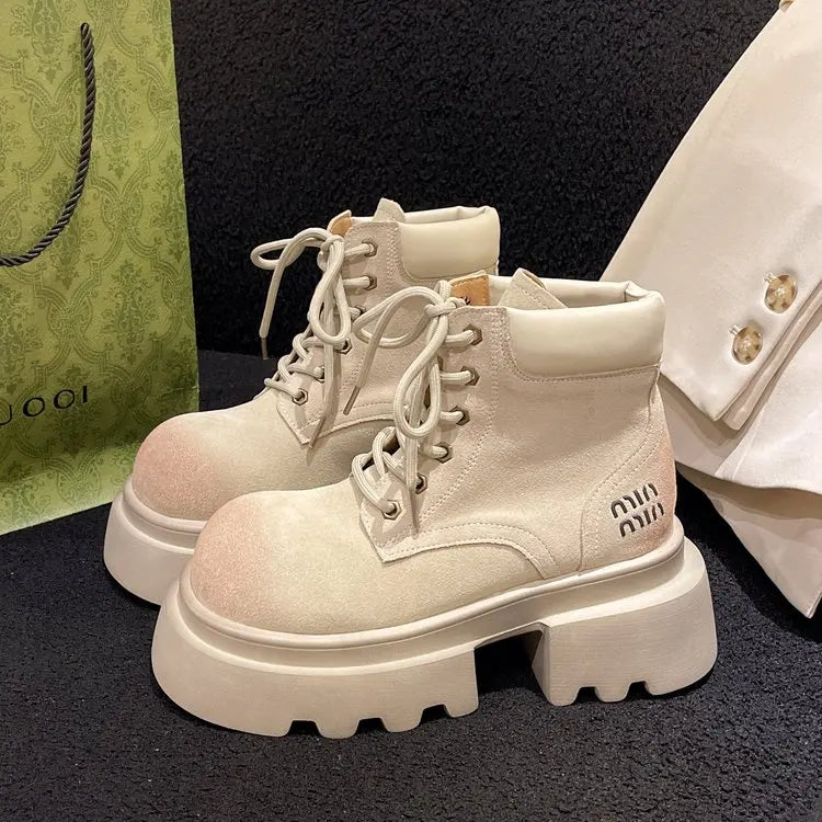 Ankle Work Boots Women Chunky Platform Chelsea Non Slip Women Shoes Designer Winter New Lace Up Casual Brand Trendy Botas Mujer
