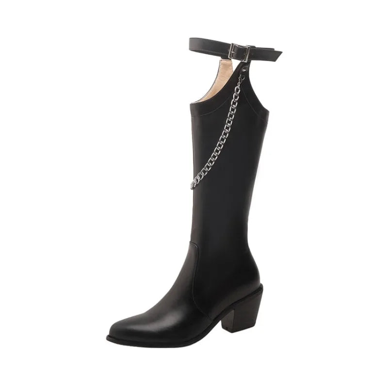 Autumn and winter boots Thick Heel womens fashion boots Banquets womens shoes with design Chain decoration design