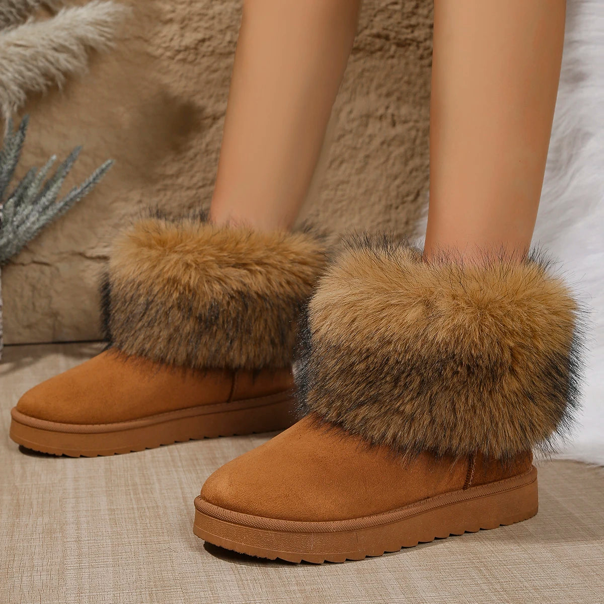 Faux Fur Flat Heels Snow Boots Women 2025 Winter Slip On Warm Thicken Plush Ankle Boots Woman Non Slip Cotton Padded Shoes
