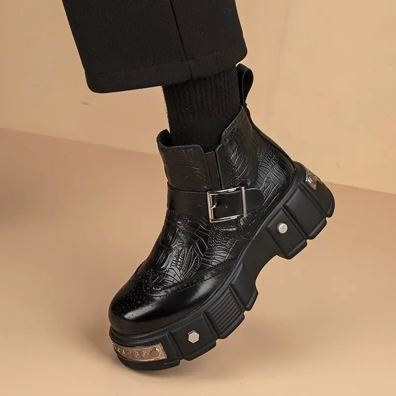 Luxurious Boots Men's 2025 Retro Rivet Carving Leather Boots Chelsea High-top Shoes for Man Punk Motorcycle Work Boots