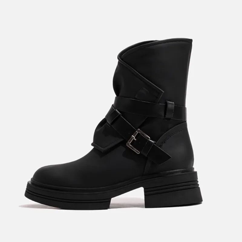 New Autumn and Winter Warm Leather Side Zipper Thick Sole Boots High Street Style Women Vintage Fashion Short Boots