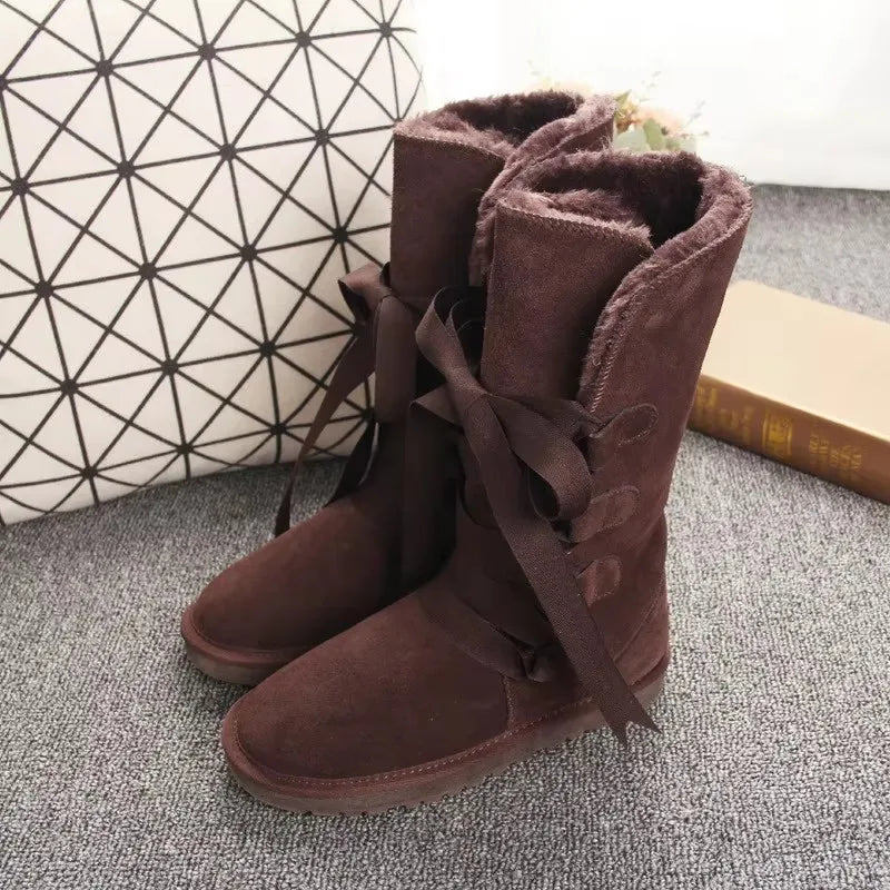 Shoes Women 2025 Cheap Lady Shoes Boots Genuine Leather Women Shoes Boots Long Winter Boots Lace Up Genuine Leather Snow Boots